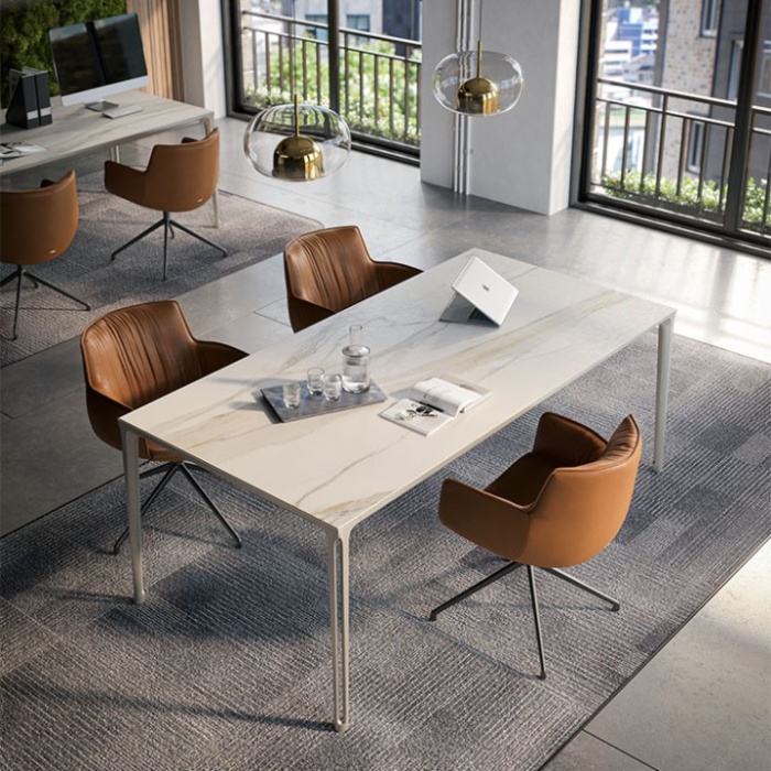 Il modello Rhonda Cantilever invece presenta la tipica struttura a sbalzo della linea di sedie cantilever, realizzata a partire da un'unica barra di acciaio. Un'opzione più funzionale o adatta ad un ufficio è Rhonda Turn, la versione di questa sedia girevole di design, realizzata con una base a quattro razze.