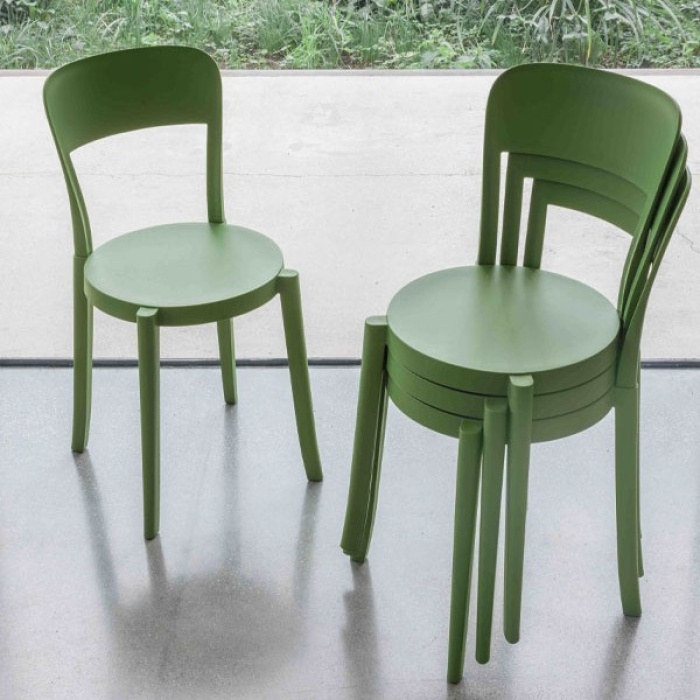 La silhouette è caratterizzata da linee pulite e una scocca ergonomica studiata per offrire un comfort ottimale. Lo schienale leggermente reclinato segue la linea del corpo, rendendo la sedia ideale per lunghi momenti di convivialità. La struttura è incredibilmente pratica: Lilly è impilabile fino a 8 unità, una soluzione salvaspazio indispensabile sia in ambito domestico che per forniture contract in bar e ristoranti.