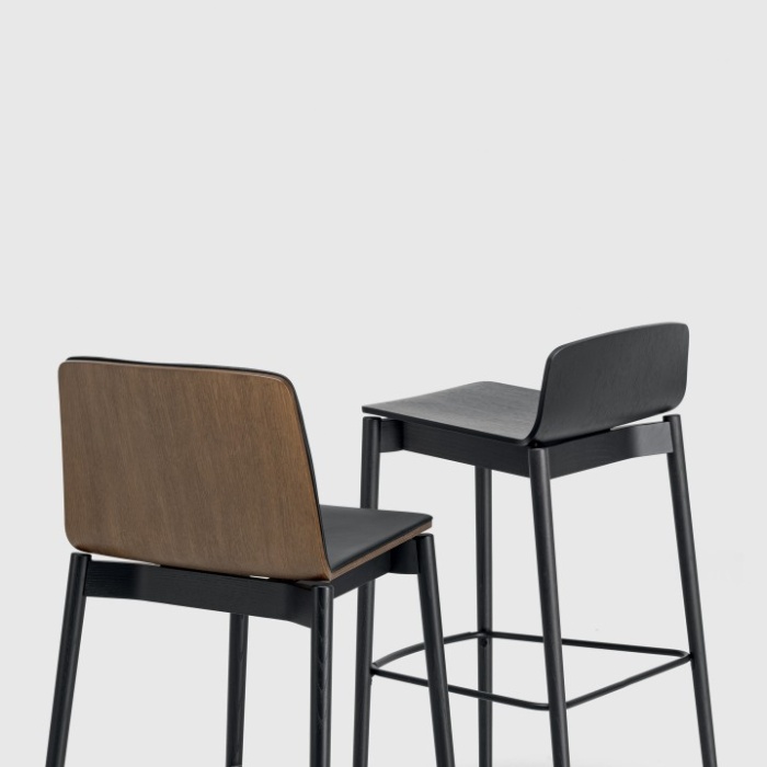 Rama Wood è disponibile anche in versione sgabello, con o senza schienale alto, mantenendo sempre una seduta confortevole e accogliente.