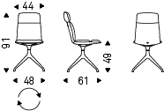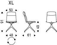 Le sedie girevoli Kelly sono caratterizzate da un’esile base a 4 razze in alluminio, leggera alla vista ma estremamente solida, che sostiene con vigore l’ampia seduta e lo schienale. Le pieghe cucite a mano, vere protagoniste del progetto, arricchiscono la superficie della sedia con un elegante gioco di volumi e chiaroscuri, espressione di alta manifattura e cura artigianale. La funzione girevole aggiunge praticità e dinamismo, rendendo questa sedia comoda ideale anche per contesti professionali o spazi multifunzionali.