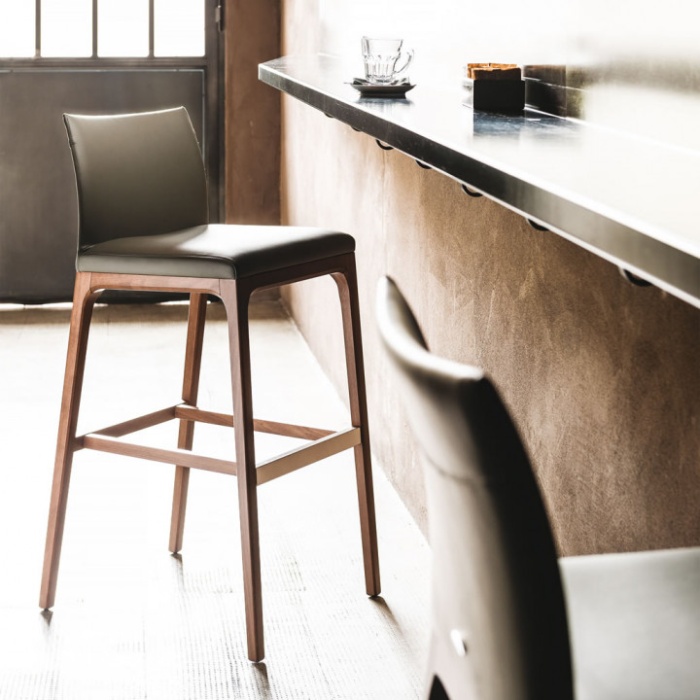 Lo sgabello mod. Arcadia marchio Cattelan è caratterizzato da un robusto telaio in vero legno di faggio e una confortevole seduta/schienale disponibile in vari rivestimenti. Comodo poggiapiedi frontale in acciaio inox che unisce le gambe aggiungendo stabilità e stile. Il modello Arcadia è disponibile in due altezze che lo rende particolarmente indicato per il piano cucina o piano snack. Ideale per un utilizzo frequente in ambienti domestici e/o commerciali quali bar e ristoranti.