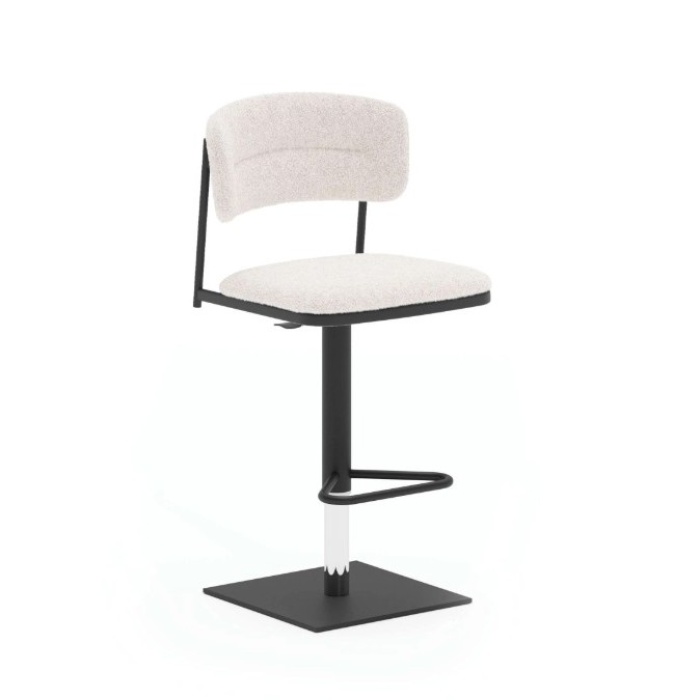 La seduta e lo schienale imbottiti, oltre a essere ergonomici e accoglienti, sono disponibili in una selezione di finiture di alta qualità, tra cui eco pelle, velluto e bouclé. Questa varietà consente di personalizzare lo sgabello in base allo stile dell’ambiente.