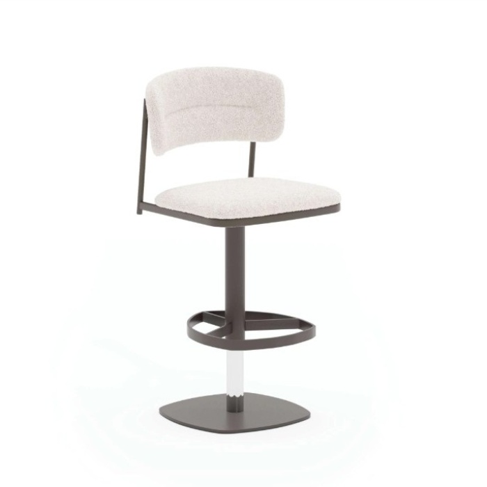 Con la sua estetica sobria ed elegante, Persy è composto da una struttura realizzata in metallo, verniciata in diverse colorazioni, una base con poggiapiedi integrato, e una seduta con schienale imbottiti, rivestiti con tessuti soffici di alta qualità, offrendo un’ergonomia avvolgente e piacevole al tatto.