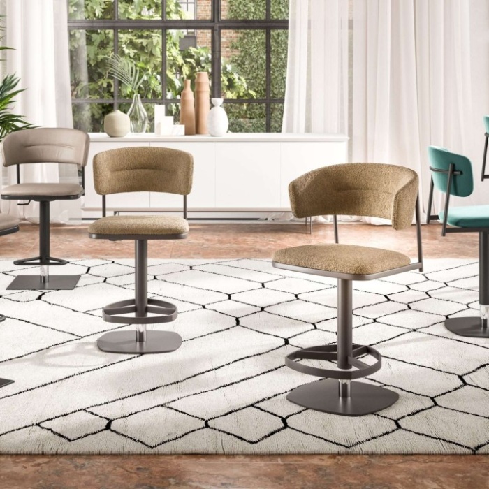 Grazie al meccanismo di alzata a gas, Petra offre una regolazione dell’altezza della seduta da 58,5 a 84,5 cm, rendendolo un complemento perfetto per diverse esigenze d’uso. Può essere utilizzato in cucina, in un open space moderno o in ambienti professionali come bar e ristoranti di design.