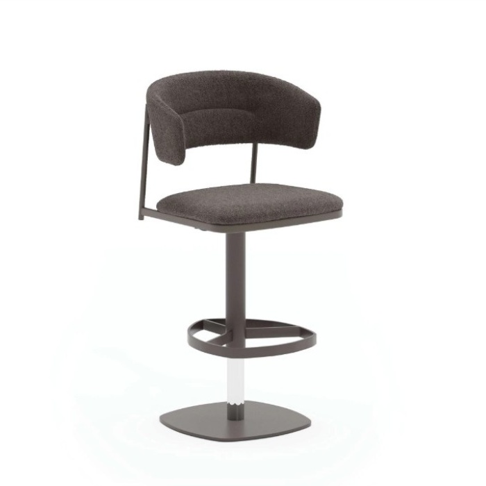 La seduta imbottita con schienale e braccioli integrati è progettata per offrire un supporto ottimale. Il rivestimento, disponibile in diverse finiture e sfumature, esalta la qualità del prodotto, adattandosi perfettamente a qualsiasi stile di arredamento, dal più classico al contemporaneo. La sua struttura solida in metallo, garantisce stabilità e resistenza nel tempo. La base con poggiapiedi integrato aggiunge un ulteriore livello di comfort, favorendo una seduta rilassata anche per periodi prolungati.