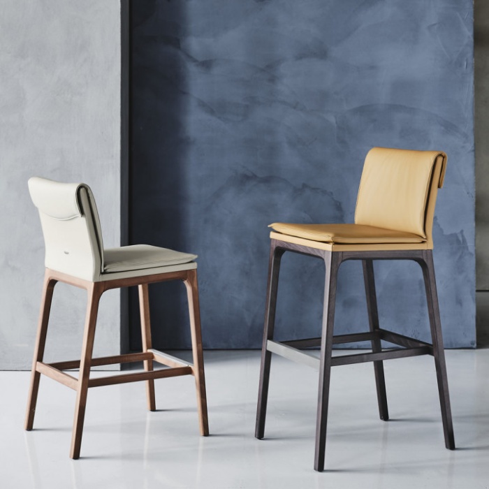 Lo sgabello mod. Sofia marchio Cattelan è caratterizzato da un robusto telaio in vero legno di faggio e una confortevole seduta/schienale disponibile in vari rivestimenti. Comodo poggiapiedi frontale che unisce la struttura aggiungendo stabilità e stile. Il modello Sofia è disponibile in due altezze che lo rende particolarmente indicato per il piano cucina o piano snack. Ideale per un utilizzo frequente in ambienti domestici e/o commerciali quali bar e ristoranti.
