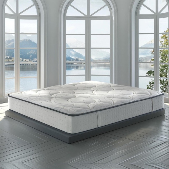 Il materasso Jolie di Rinaldi Italian Bed System offre un comfort superiore grazie al tessuto stretch in tecnofibra antistatica e viscosa, morbido al tatto con trattamento Silver antimicrobico. L’interno presenta un’imbottitura anallergica per una termoregolazione costante, supportata dallo strato Water Soft Air ad alta traspirabilità. La struttura interna combina strati HydroAir ultra-elastici e Technocell® portanti ed elastici per un sostegno accogliente e traspirante. Il pannello inferiore completa il materasso con tessuto Full D Flat per una perfetta aerazione.
