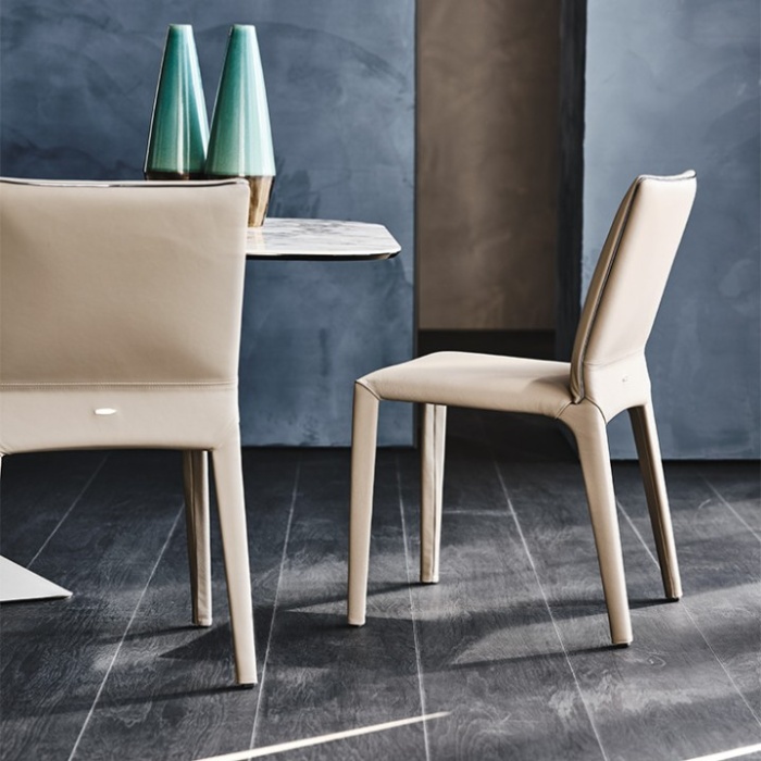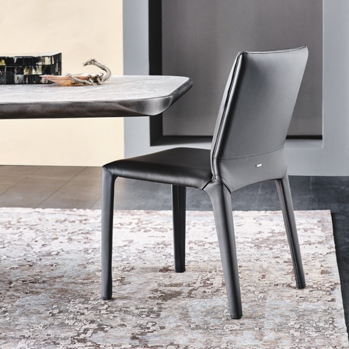 Il punto di forza della sedia Penelope è il rivestimento integrale, disponibile in tessuto, ecopelle o pelle, selezionati tra materiali pregiati e resistenti. La vasta gamma di tonalità consente un’ampia personalizzazione, adattandosi con facilità sia a contesti contemporanei sia a interni più classici. Le delicate cuciture in tinta, realizzate con estrema precisione, esaltano le linee armoniose della seduta e testimoniano l’elevata qualità della manifattura. Ogni dettaglio è studiato per garantire un equilibrio perfetto tra eleganza visiva e comfort prolungato.