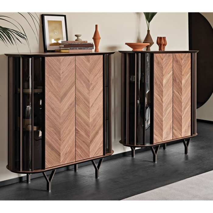 La madia di design Carnaby rappresenta l’incontro perfetto tra creatività audace e raffinata eleganza, diventando un elemento d’arredo capace di catturare l’attenzione e valorizzare qualsiasi ambiente living contemporaneo. Il suo tratto distintivo risiede nelle ante in cristallo bombato, realizzate attraverso avanzate tecniche di lavorazione artigianale che donano profondità e movimento alla struttura, creando un suggestivo gioco di luci e riflessi.