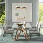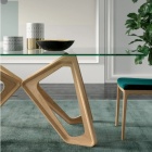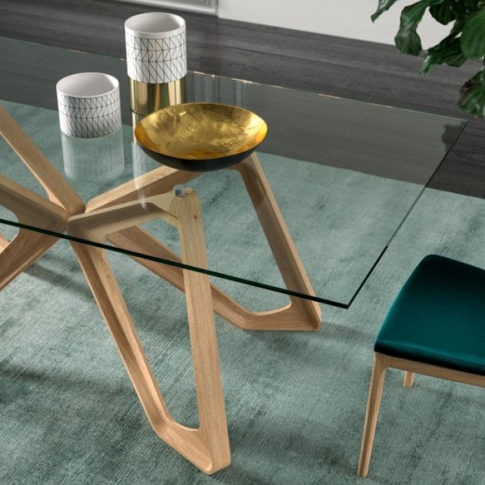 Il contrasto tra la matericità del legno e la trasparenza sofisticata del vetro crea un equilibrio visivo affascinante, che fa del tavolo Papillon il protagonista assoluto della zona pranzo. Si inserisce con naturalezza sia in ambienti contemporanei dal design pulito, sia in spazi più classici dove può emergere come elemento dal forte impatto visivo.