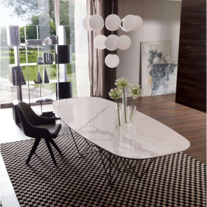 Tavolo ovale fisso Fil8 Ozzio piano Ceramica o Marble Glass 220x110 cm