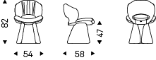 La seduta e lo schienale di questa poltroncina da pranzo imbottita, modellati come due valve complementari di una conchiglia, presentano una forma poligonale, arricchita da spigoli smussati e dolci curve. E se di una conchiglia si tratta, questa sedia di design non può che rivelare una magnifica perla al suo interno, realizzata, o meglio sottratta, dal designer con l’espediente della cavità ellittica sullo schienale.