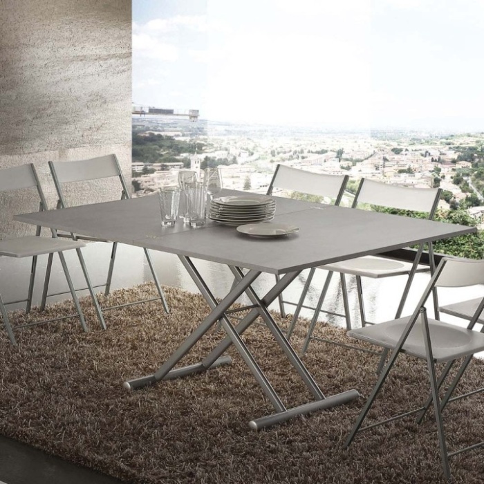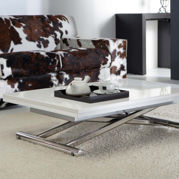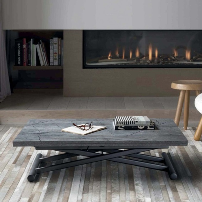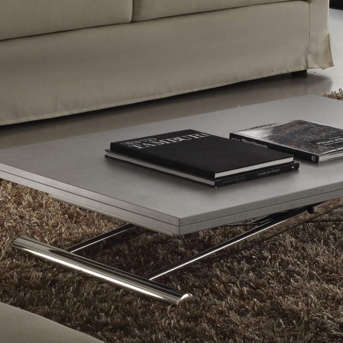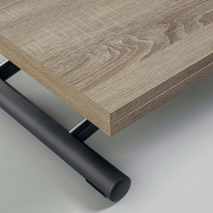 Dotato di un meccanismo a gas con leva, consente di regolare l'altezza da 25 a 75 cm, trasformandosi facilmente da tavolino da salotto a tavolo da pranzo.
