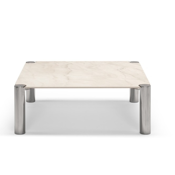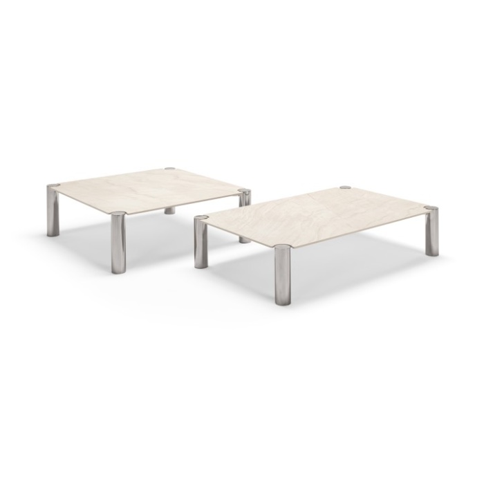 Ogni elemento è pensato per adattarsi al tuo gusto: il ripiano è proposto in tre diverse lavorazioni, mentre i piedini sono disponibili in finiture lucida, cromata, titanio o ferro calamina, per un effetto di grande impatto visivo.