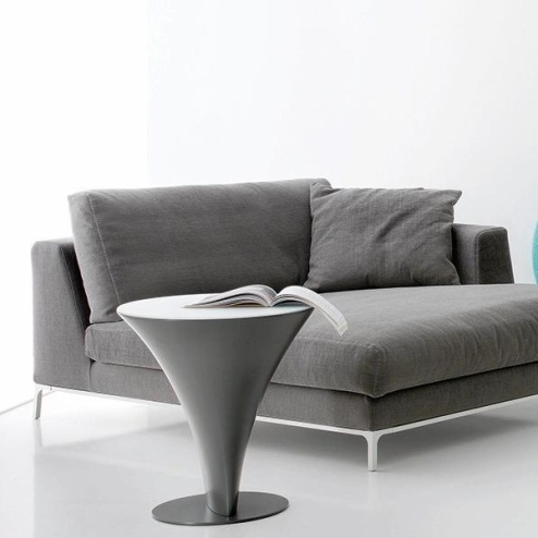La perfetta brillantezza del vetro, che come l’acqua riflette la luce, si ritrova nel piano del tavolino Boat, sostenuto da una solida base che si restringe a terra ancorandosi ad una stabile zavorra. Disponibile in due altezze si accosta agevolmente al divano.