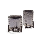 L'effetto ottico è spettacolare, accentuato ulteriormente dalle ombreggiature violacee del cristallo fumè. La luce riverbera tra le increspature regolari e restituisce un effetto soffuso e delicato.