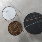 La finitura sablé che ricopre la base del tavolino, offre una superficie opaca e vellutata, aggiungendo ulteriore eleganza e resistenza e garantendo durabilità nel tempo.
