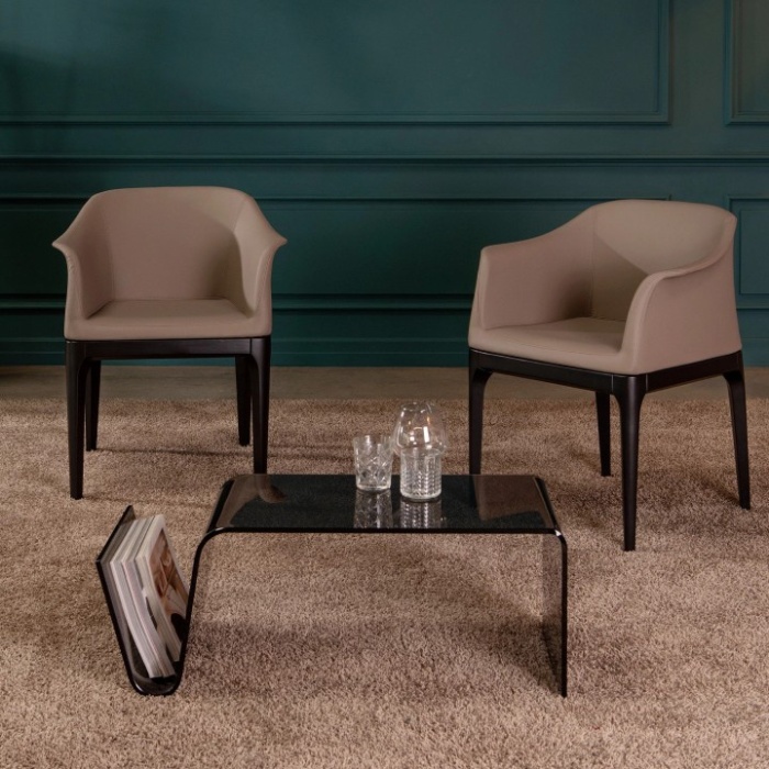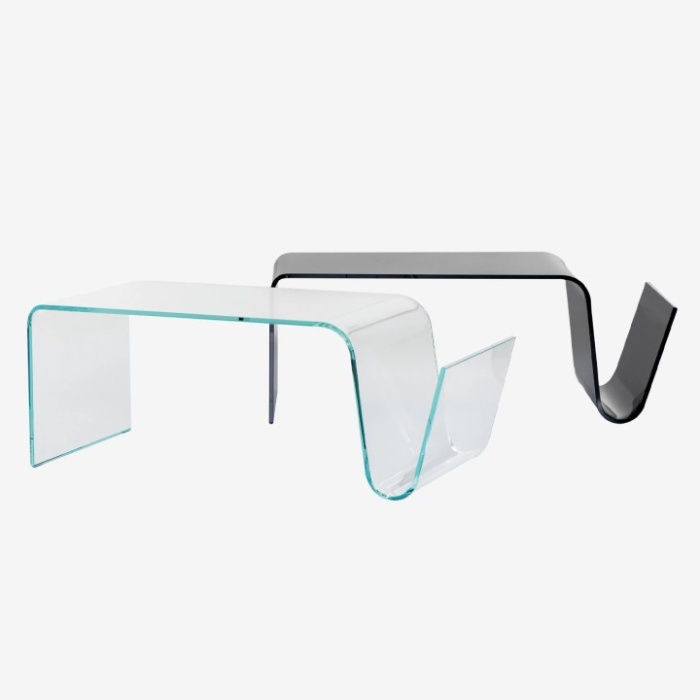 Il tavolino Line è un complemento d’arredo dal design essenziale e raffinato, caratterizzato da una linea continua che si sviluppa con armonia per creare non solo un elegante piano d’appoggio, ma anche un pratico portariviste integrato. La sua struttura in vetro curvato, disponibile nelle varianti extrachiaro o fumè, dona leggerezza visiva e trasparenza, permettendo al tavolino di inserirsi con discrezione in qualsiasi contesto abitativo. La versione extrachiara esalta la purezza delle forme e la luminosità dello spazio, mentre la finitura fumè aggiunge un tocco di sofisticata modernità, perfetto per ambienti più contemporanei.