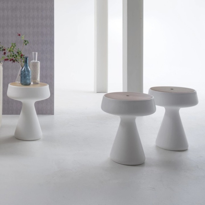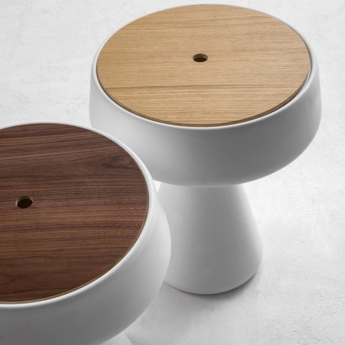 Il servetto Maki si distingue per la sua forma particolare e innovativa, capace di coniugare estetica e funzionalità in un unico complemento d’arredo. La sua struttura in polietilene si sviluppa con linee morbide e compatte, aprendosi verso l’alto fino a incontrare il top in legno, creando un raffinato contrasto tra materiali moderni e naturali. Ma il Maki non è solo un servetto: grazie alla sua progettazione intelligente, diventa anche un contenitore pratico, ideale per riporre piccoli oggetti e mantenere in ordine lo spazio circostante.
