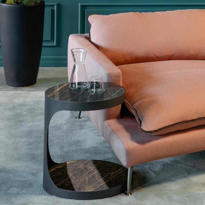 La collezione Modì si compone di due tavolini e un servetto, accomunati da una struttura sinuosa in acciaio verniciato che ne definisce l’eleganza e la leggerezza visiva. Ogni pezzo è completato da un raffinato top in gres porcellanato, materiale resistente e dall’estetica pregiata, disponibile in diverse finiture per adattarsi a stili e ambienti differenti. L’equilibrio tra il rigore del metallo e la raffinatezza del gres rende questi tavolini versatili e funzionali, capaci di arricchire con discrezione sia il living che la zona notte.