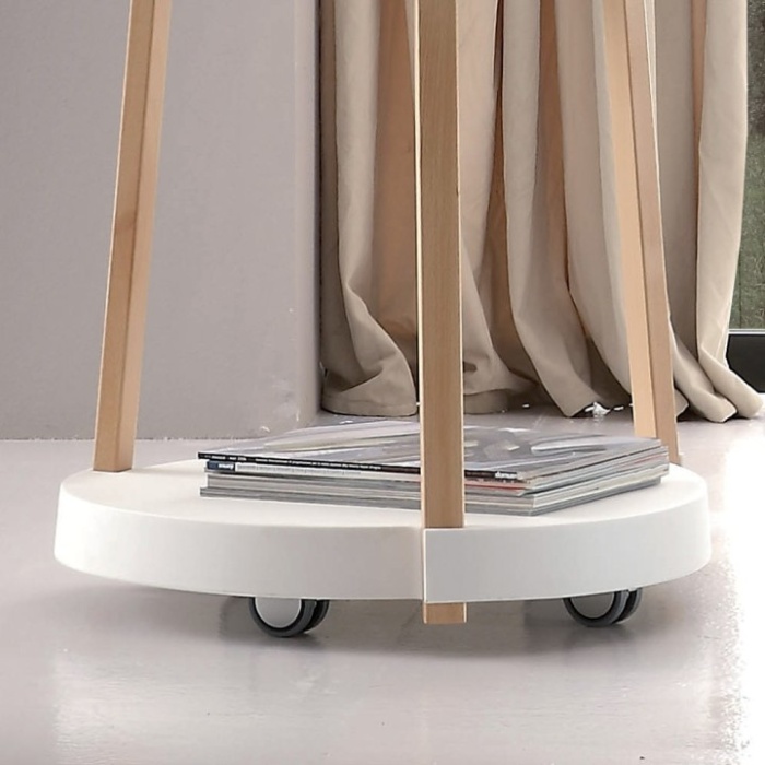 Grazie alle ruote integrate, Oasi può essere facilmente spostato, rendendolo ideale come carrello da servizio durante pranzi o cene, o come tavolino da salotto per appoggiare libri, bevande o oggetti decorativi.