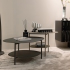 I tavolini Oasi rappresentano l’incontro perfetto tra eleganza e funzionalità, grazie al loro design puro e contemporaneo che si inserisce con naturalezza in diversi contesti abitativi. La loro caratteristica distintiva è la presenza di due piani di appoggio dalle curve morbide e delicate, studiati per garantire praticità senza rinunciare alla leggerezza estetica. Disponibili nelle raffinate finiture carbone, oro matt o bronzo, i tavolini Oasi si adattano a stili differenti, dal moderno al più classico, diventando protagonisti discreti ma di grande impatto visivo.