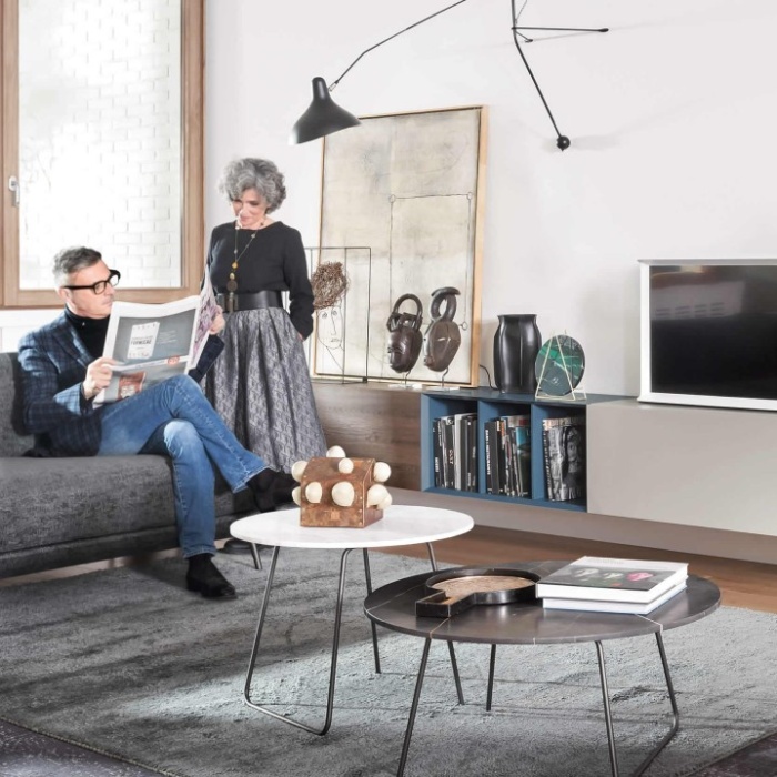 Orbis marchio Novamobili è una collezione di tavolini circolari proposta in due altezze, da utilizzare come comodo appoggio da posizionare davanti al divano o vicino al letto come comodino. Orbis è un tavolino componibile, elegante e leggero disponible con piano in ecolegno o laccato e gambe in metallo. Con le sue due altezze permette di creare soluzioni sempre diverse per arredare con brio e praticità il tuo soggiorno, dining e zona notte.