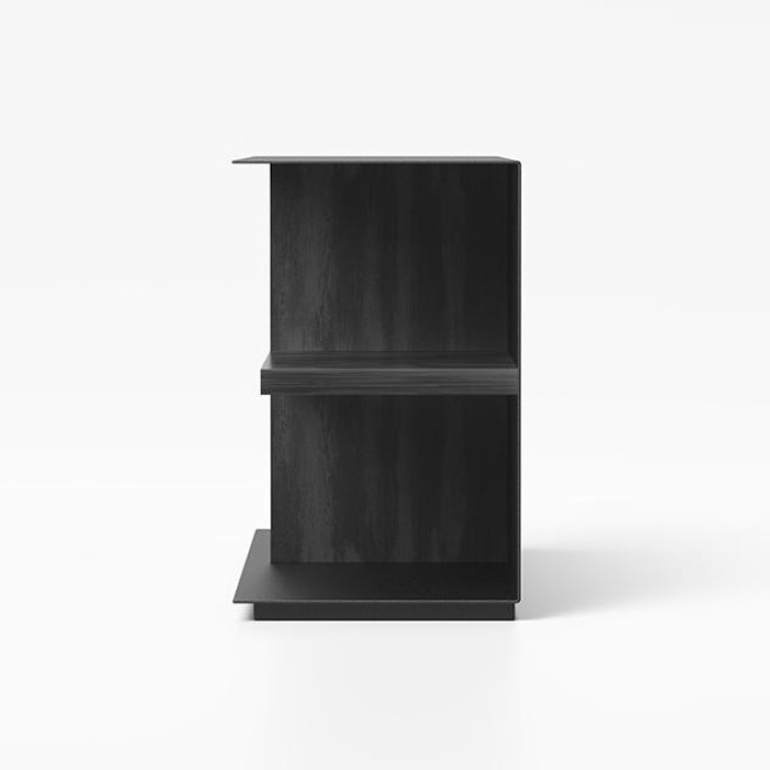 La struttura è realizzata in acciaio verniciato sablé, che garantisce resistenza e un’estetica moderna grazie alla sua finitura opaca. Il ripiano in laminato ecologico da 25 mm, combina leggerezza e robustezza. Le tre mensole offrono ampio spazio per appoggiare libri, riviste, bevande o accessori decorativi, rendendo l'ambiente ordinato e di carattere.