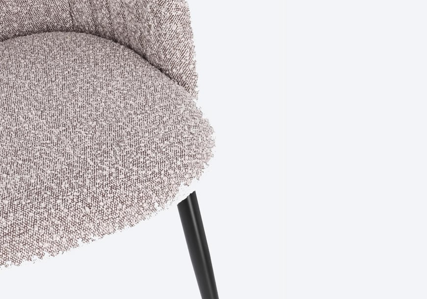 La sedia Queen Visone di Bizzotto è un perfetto esempio di come questo tessuto possa trasformare un semplice complemento d'arredo in un pezzo unico. Il suo design elegante e minimalista, unito alla morbidezza del bouclé, la rendono un must-have per chi ama seguire le ultime tendenze.