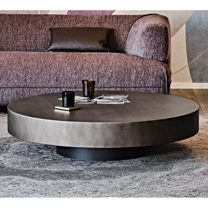La linea di tavolini da salotto di design Arena completa un soggiorno moderno ed elegante, mettendo in risalto la pregiata finitura Brushed lavorata a mano. Sapienti artigiani imprimono dei graffi delicati e impercettibili creando un pattern a trama e ordito.