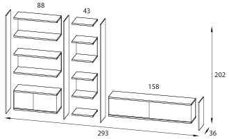 Dimensioni: L.293 x P.36 x H.202 cm