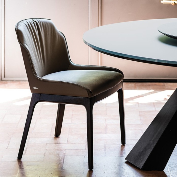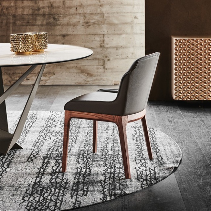 L’anima di Musa si rivela nelle preziose lavorazioni sartoriali, curate nei minimi dettagli, che impreziosiscono seduta e schienale con un linguaggio estetico sofisticato. La struttura in pregiato legno massello conferisce solidità, calore e prestigio, rendendo questa sedia moderna non solo bella da vedere, ma anche estremamente confortevole e duratura nel tempo. Ogni elemento è studiato per offrire un’ergonomia eccellente, trasformando l’atto di sedersi in un’esperienza di autentico benessere, ideale sia per l’uso quotidiano sia per contesti più rappresentativi.